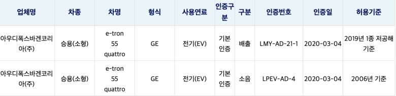 들리는바에 의하면 아우디 E-트론 55 콰트로가 최근 국내에서 인증을 마치고 정식 출시를 앞두고 있다는 소식이 있다. 테슬라의 모델3가 수입차 전체 판매 3위에 오를 정도로 국내 시장에서 전기차에 대한 관심이 높아지고 있는 가운데 매력적인 전기차가 한 대 더 추가될것 같다.